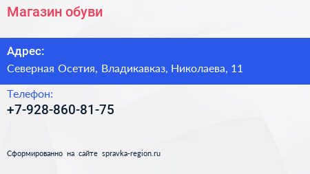 Магазин обуви по адресу Северная Осетия, Владикавказ, Николаева, 11 в дальнейшем Организация, размещена в следующих категориях: