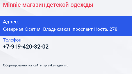 Minnie, магазин детской одежды по адресу Северная Осетия, Владикавказ, проспект Коста, 278 в дальнейшем Организация, размещена в следующих категориях: