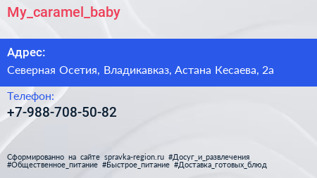 My_caramel_baby по адресу Северная Осетия, Владикавказ, Астана Кесаева, 2а в дальнейшем Организация, размещена в следующих категориях: