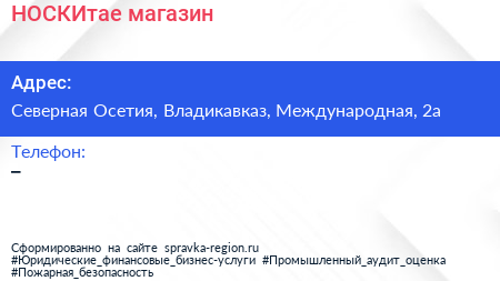 НОСКИтае, магазин по адресу Северная Осетия, Владикавказ, Международная, 2а в дальнейшем Организация, размещена в следующих категориях: