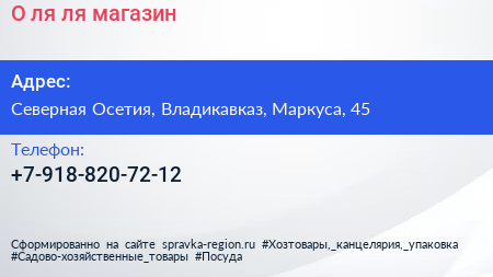 О-ля-ля, магазин по адресу Северная Осетия, Владикавказ, Маркуса, 45 в дальнейшем Организация, размещена в следующих категориях: