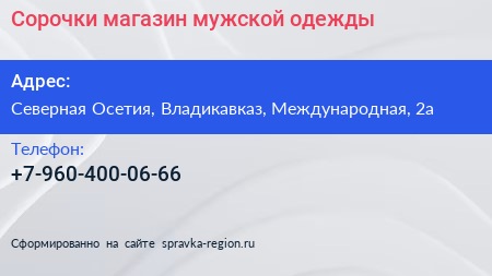 Сорочки, магазин мужской одежды по адресу Северная Осетия, Владикавказ, Международная, 2а в дальнейшем Организация, размещена в следующих категориях: