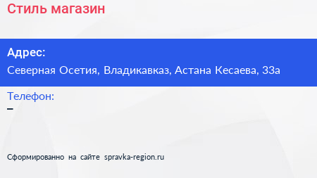 Стиль, магазин по адресу Северная Осетия, Владикавказ, Астана Кесаева, 33а в дальнейшем Организация, размещена в следующих категориях: