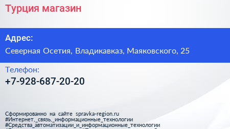 Турция, магазин по адресу Северная Осетия, Владикавказ, Маяковского, 25 в дальнейшем Организация, размещена в следующих категориях: