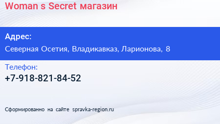 Woman`s Secret, магазин по адресу Северная Осетия, Владикавказ, Ларионова, 8 в дальнейшем Организация, размещена в следующих категориях: