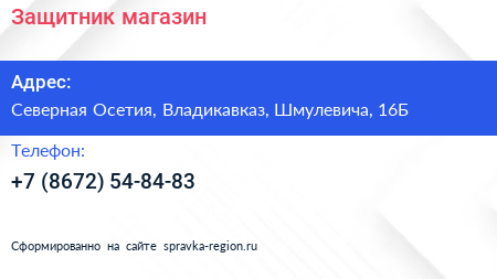 Защитник, магазин по адресу Северная Осетия, Владикавказ, Шмулевича, 16Б в дальнейшем Организация, размещена в следующих категориях:
