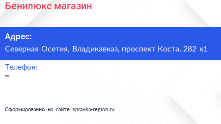 Бенилюкс, магазин по адресу Северная Осетия, Владикавказ, проспект Коста, 282 к1 в дальнейшем Организация, размещена в следующих категориях: