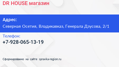 DR.HOUSE, магазин по адресу Северная Осетия, Владикавказ, Генерала Дзусова, 2/1 в дальнейшем Организация, размещена в следующих категориях: