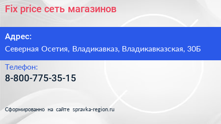 Fix price, сеть магазинов по адресу Северная Осетия, Владикавказ, Владикавказская, 30Б в дальнейшем Организация, размещена в следующих категориях: