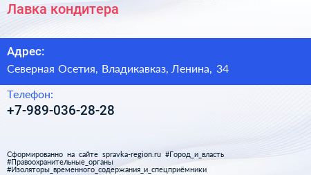 Лавка кондитера по адресу Северная Осетия, Владикавказ, Ленина, 34 в дальнейшем Организация, размещена в следующих категориях: