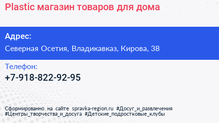Plastic, магазин товаров для дома по адресу Северная Осетия, Владикавказ, Кирова, 38 в дальнейшем Организация, размещена в следующих категориях: