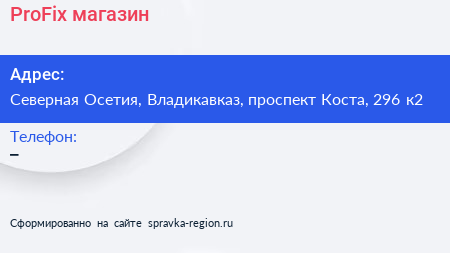 ProFix, магазин по адресу Северная Осетия, Владикавказ, проспект Коста, 296 к2 в дальнейшем Организация, размещена в следующих категориях: