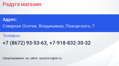 Радуга, магазин по адресу Северная Осетия, Владикавказ, Пожарского, 7 в дальнейшем Организация, размещена в следующих категориях: