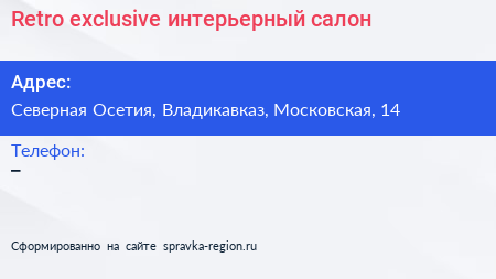 Retro exclusive, интерьерный салон по адресу Северная Осетия, Владикавказ, Московская, 14 в дальнейшем Организация, размещена в следующих категориях: