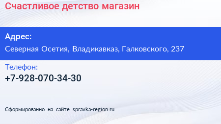 Счастливое детство, магазин по адресу Северная Осетия, Владикавказ, Галковского, 237 в дальнейшем Организация, размещена в следующих категориях: