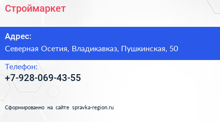 Строймаркет по адресу Северная Осетия, Владикавказ, Пушкинская, 50 в дальнейшем Организация, размещена в следующих категориях: