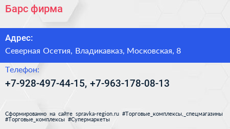 Барс, фирма по адресу Северная Осетия, Владикавказ, Московская, 8 в дальнейшем Организация, размещена в следующих категориях: