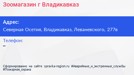Зоомагазин, г. Владикавказ по адресу Северная Осетия, Владикавказ, Леваневского, 277в в дальнейшем Организация, размещена в следующих категориях: