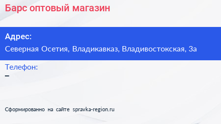 Барс, оптовый магазин по адресу Северная Осетия, Владикавказ, Владивостокская, 3а в дальнейшем Организация, размещена в следующих категориях: