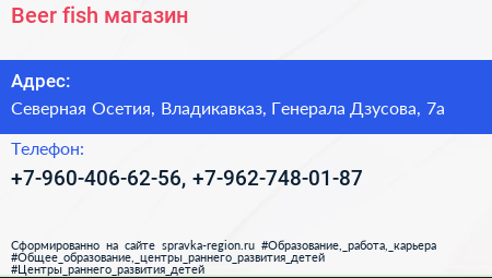 Beer fish, магазин по адресу Северная Осетия, Владикавказ, Генерала Дзусова, 7а в дальнейшем Организация, размещена в следующих категориях:
