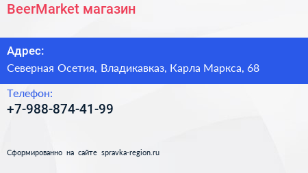 BeerMarket, магазин по адресу Северная Осетия, Владикавказ, Карла Маркса, 68 в дальнейшем Организация, размещена в следующих категориях: