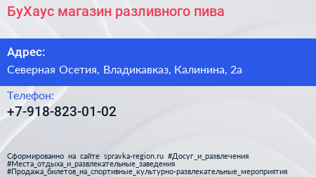 БуХаус, магазин разливного пива по адресу Северная Осетия, Владикавказ, Калинина, 2а в дальнейшем Организация, размещена в следующих категориях: