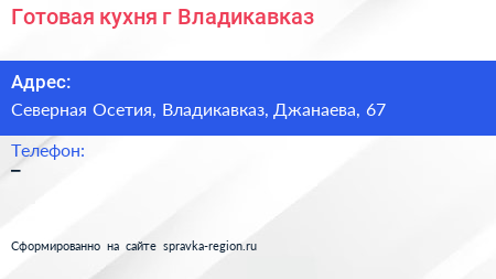 Готовая кухня, г. Владикавказ по адресу Северная Осетия, Владикавказ, Джанаева, 67 в дальнейшем Организация, размещена в следующих категориях: