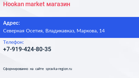 Hookan market, магазин по адресу Северная Осетия, Владикавказ, Маркова, 14 в дальнейшем Организация, размещена в следующих категориях: