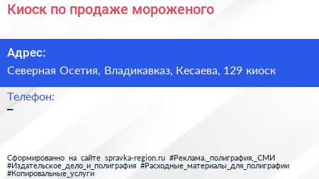 Киоск по продаже мороженого по адресу Северная Осетия, Владикавказ, Кесаева, 129 киоск в дальнейшем Организация, размещена в следующих категориях: