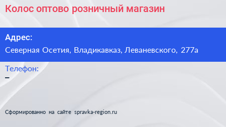 Колос, оптово-розничный магазин по адресу Северная Осетия, Владикавказ, Леваневского, 277а в дальнейшем Организация, размещена в следующих категориях:
