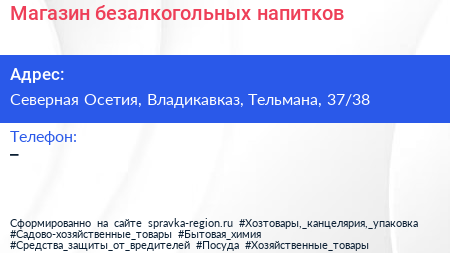 Магазин безалкогольных напитков по адресу Северная Осетия, Владикавказ, Тельмана, 37/38 в дальнейшем Организация, размещена в следующих категориях: