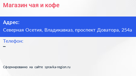 Магазин чая и кофе по адресу Северная Осетия, Владикавказ, проспект Доватора, 254а в дальнейшем Организация, размещена в следующих категориях: