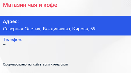Магазин чая и кофе по адресу Северная Осетия, Владикавказ, Кирова, 59 в дальнейшем Организация, размещена в следующих категориях: