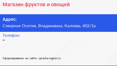 Магазин фруктов и овощей по адресу Северная Осетия, Владикавказ, Калоева, 402/1а в дальнейшем Организация, размещена в следующих категориях: