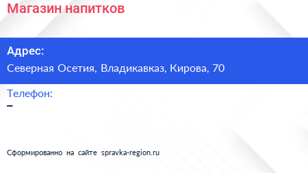 Магазин напитков по адресу Северная Осетия, Владикавказ, Кирова, 70 в дальнейшем Организация, размещена в следующих категориях: