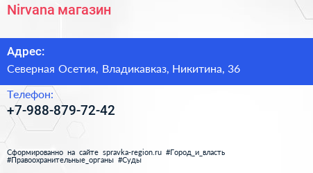 Nirvana, магазин по адресу Северная Осетия, Владикавказ, Никитина, 36 в дальнейшем Организация, размещена в следующих категориях: