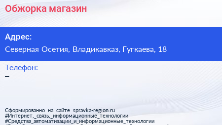 Обжорка, магазин по адресу Северная Осетия, Владикавказ, Гугкаева, 18 в дальнейшем Организация, размещена в следующих категориях: