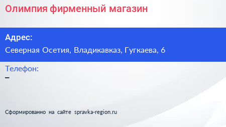 Олимпия, фирменный магазин по адресу Северная Осетия, Владикавказ, Гугкаева, 6 в дальнейшем Организация, размещена в следующих категориях: