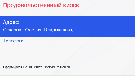 Продовольственный киоск по адресу Северная Осетия, Владикавказ, в дальнейшем Организация, размещена в следующих категориях: