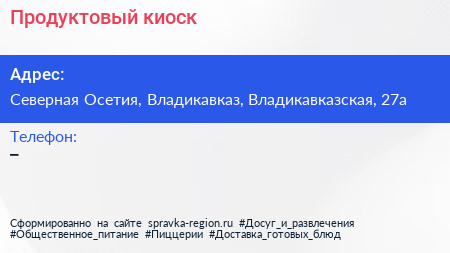 Продуктовый киоск по адресу Северная Осетия, Владикавказ, Владикавказская, 27а в дальнейшем Организация, размещена в следующих категориях: