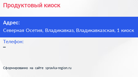 Продуктовый киоск по адресу Северная Осетия, Владикавказ, Владикавказская, 1 киоск в дальнейшем Организация, размещена в следующих категориях: