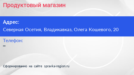 Продуктовый магазин по адресу Северная Осетия, Владикавказ, Олега Кошевого, 20 в дальнейшем Организация, размещена в следующих категориях:
