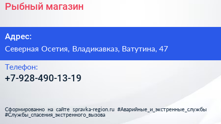 Рыбный магазин по адресу Северная Осетия, Владикавказ, Ватутина, 47 в дальнейшем Организация, размещена в следующих категориях:
