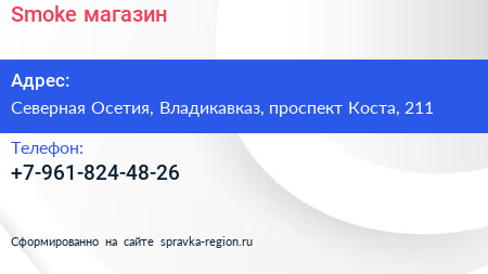 Smoke, магазин по адресу Северная Осетия, Владикавказ, проспект Коста, 211 в дальнейшем Организация, размещена в следующих категориях: