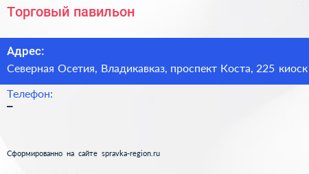 Торговый павильон по адресу Северная Осетия, Владикавказ, проспект Коста, 225 киоск в дальнейшем Организация, размещена в следующих категориях: