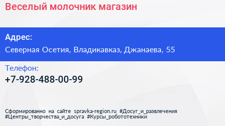 Веселый молочник, магазин по адресу Северная Осетия, Владикавказ, Джанаева, 55 в дальнейшем Организация, размещена в следующих категориях: