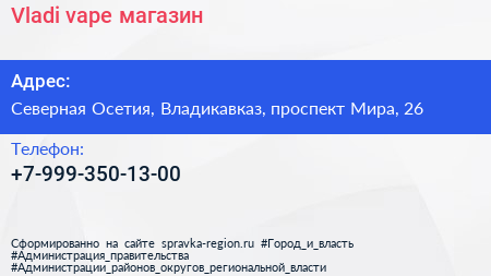 Vladi vape, магазин по адресу Северная Осетия, Владикавказ, проспект Мира, 26 в дальнейшем Организация, размещена в следующих категориях: