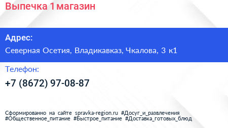 Выпечка №1, магазин по адресу Северная Осетия, Владикавказ, Чкалова, 3 к1 в дальнейшем Организация, размещена в следующих категориях:
