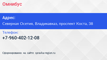 Омнибус по адресу Северная Осетия, Владикавказ, проспект Коста, 38 в дальнейшем Организация, размещена в следующих категориях: