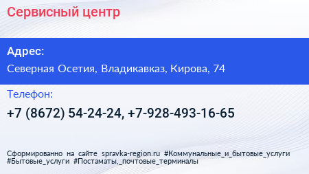 Сервисный центр по адресу Северная Осетия, Владикавказ, Кирова, 74 в дальнейшем Организация, размещена в следующих категориях: